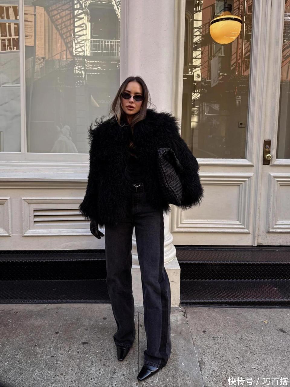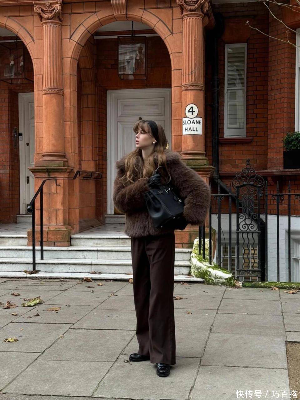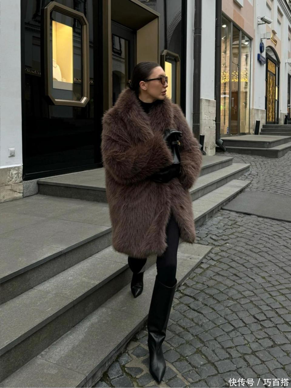可能有姐妹会觉得冬天选择不露腿穿搭会让人觉得整体造型沉闷不透气,但实际并不是这样的,不露腿造型风格多变,大家可以像博主一样旋涡棕色貂皮大衣与之搭配,颜色上形成互补,相互衬托、相互修饰,非常协调好看。