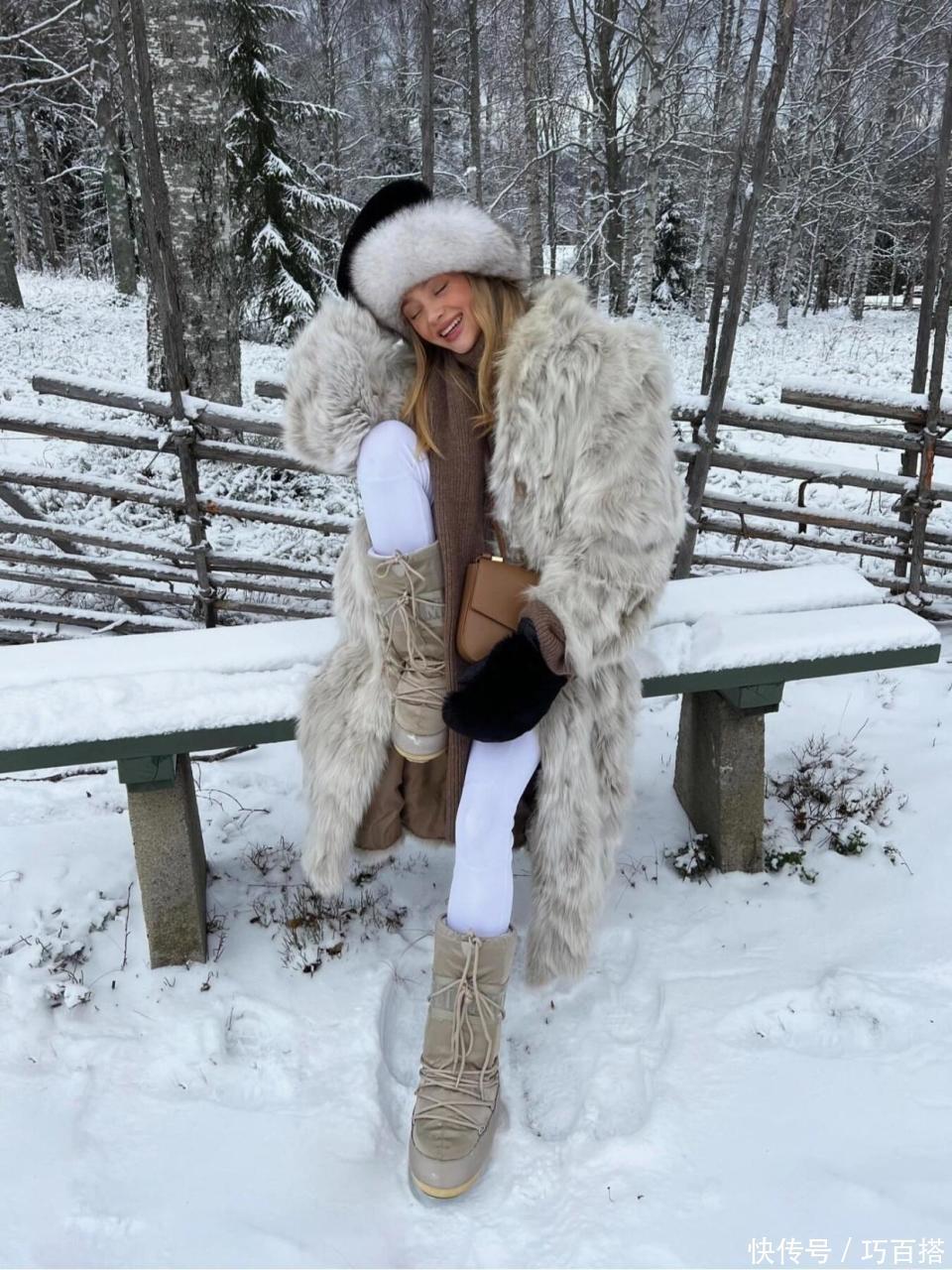 除了长裤绝对保暖外,上衣也需要大家认真挑选,别的不说,但单品保暖性上一定要达标,大家可以选择羽绒服也可以选择皮草,可以选择皮毛一体棉服也可以选择内里充羽绒的风衣。