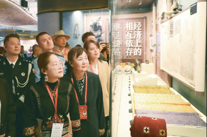 2024年9月28日至10月1日京海配资,全国少数民族参观团在北京参观考察,感受新时代伟大成就。图为参观团在民族文化宫参观铸牢中华民族共同体意识文物古籍展,了解中华民族共同体形成发展的历史。 民族画报社供图 陈涛/摄