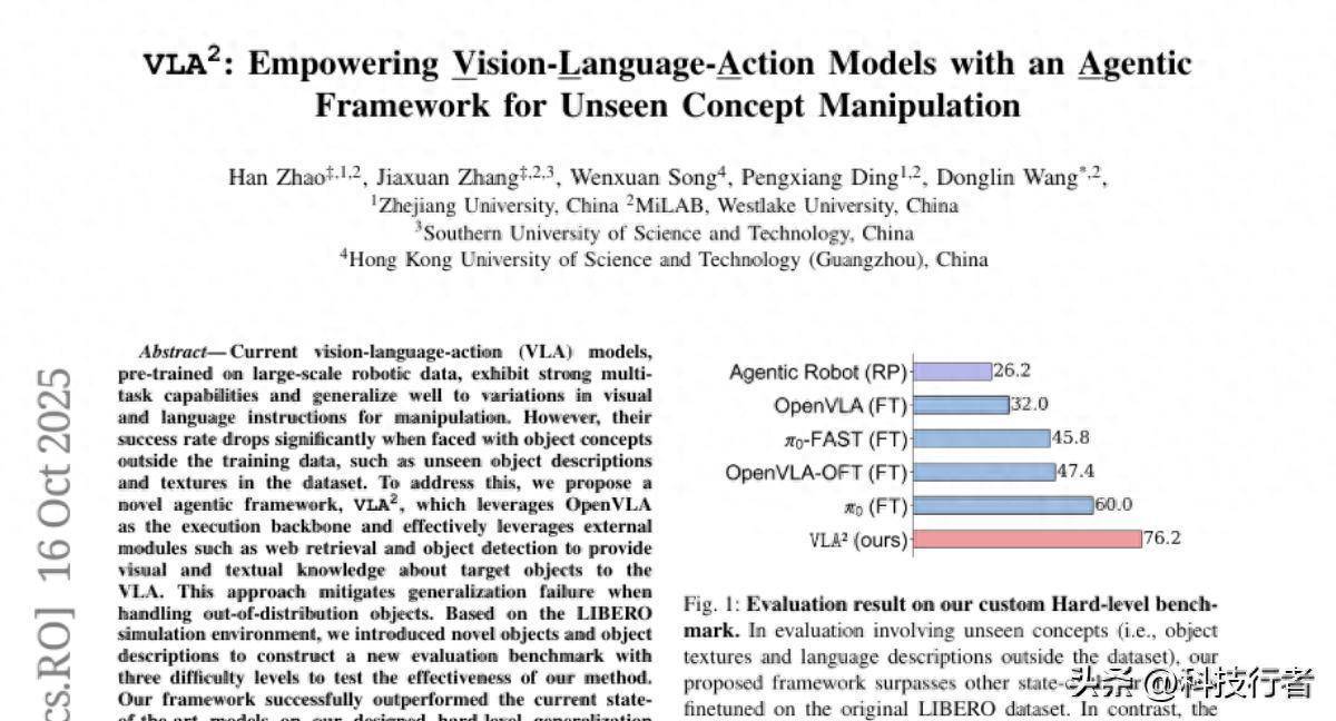 这项由西湖大学MiLAB实验室的赵涵等研究人员于2024年10月发表在arXiv预印本平台上的研究(论文编号:2510.14902v1),为机器人视觉-语言-动作模型带来了革命性的改进。该研究团队包括来自浙江大学、西湖大学、南方科技大学和香港科技大学(广州)的多位研究者,他们共同开发了一个名为VLA?的智能框架,让机器人能够像人类一样在遇到陌生物品时主动"上网搜索"来学习新知识。